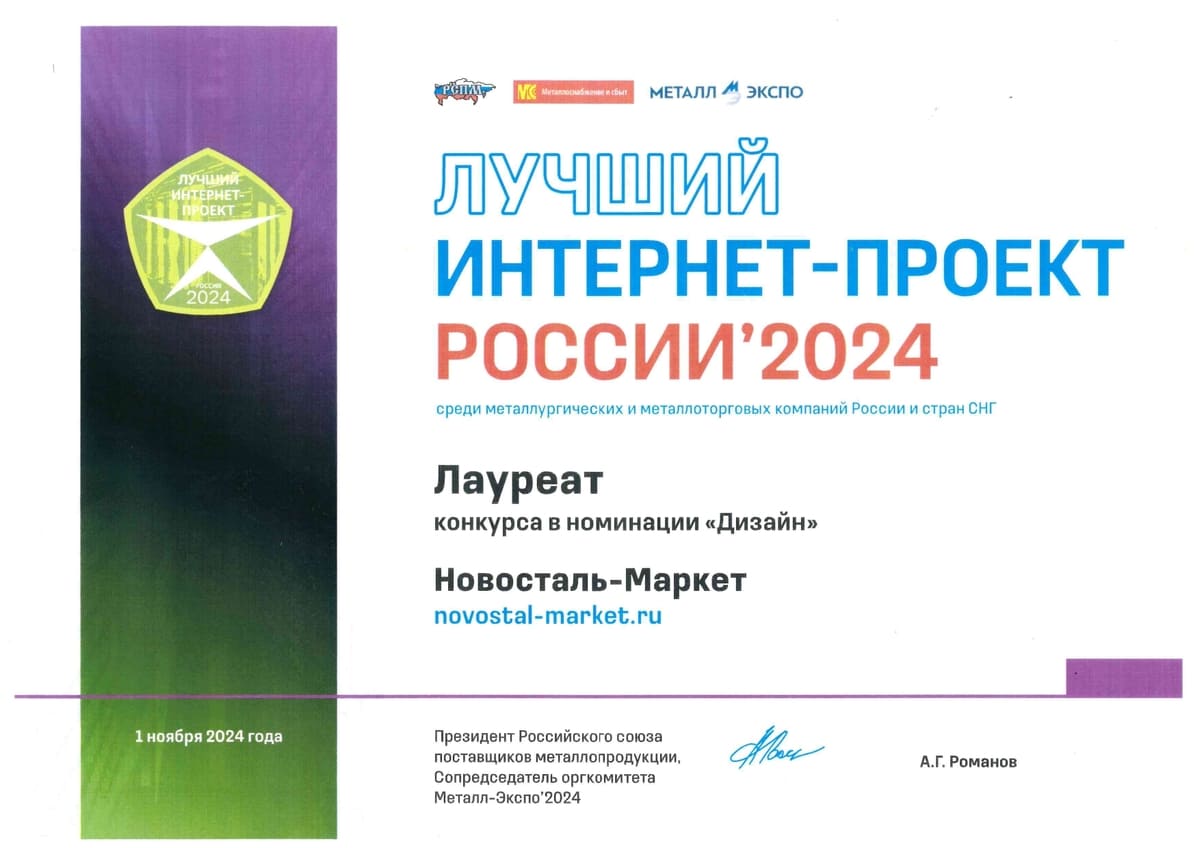 Лучший интернет-проект России 2024 г. среди металлургических и металлоторговых компаний России и стран СНГ в номинации "Дизайн".