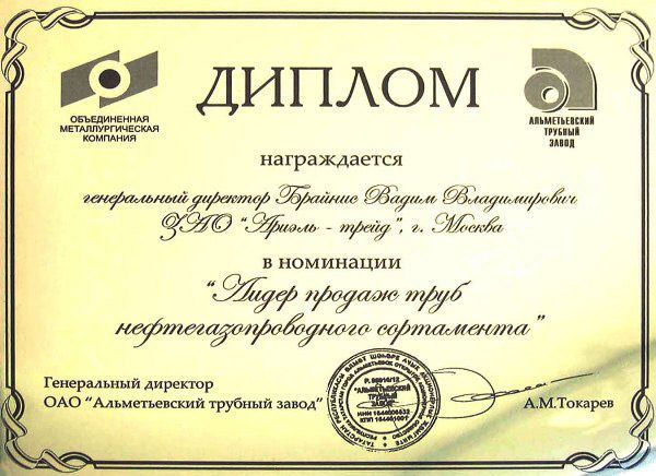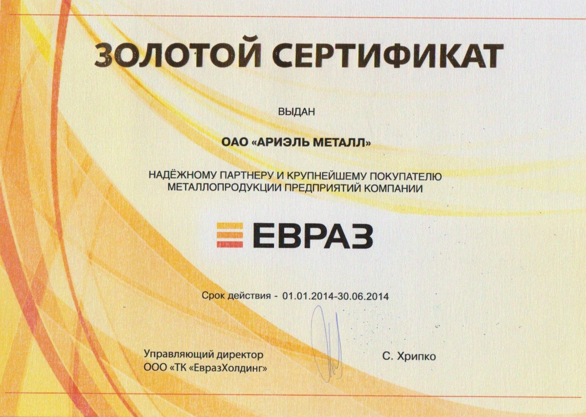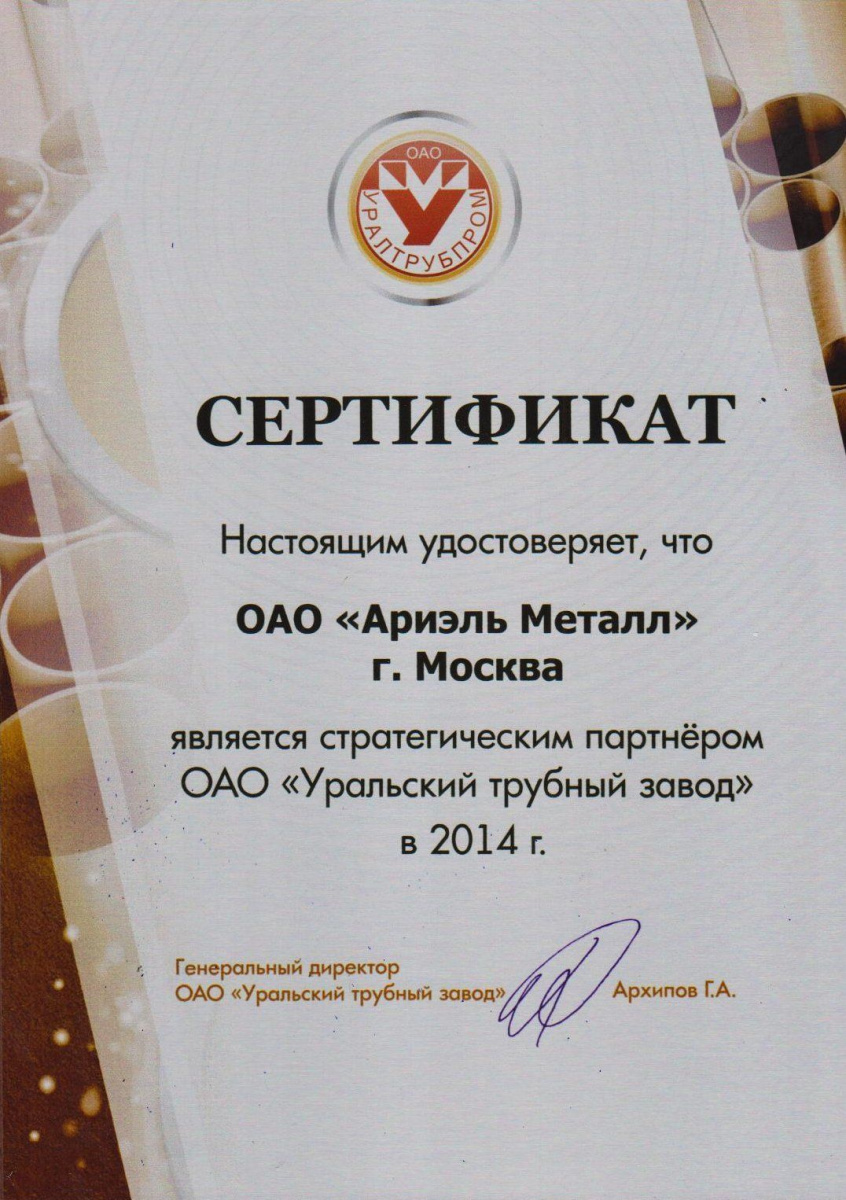 ОАО «Ариэль Металл» является стратегическим партненром ОАО «Уральский трубный завод» в 2014 году