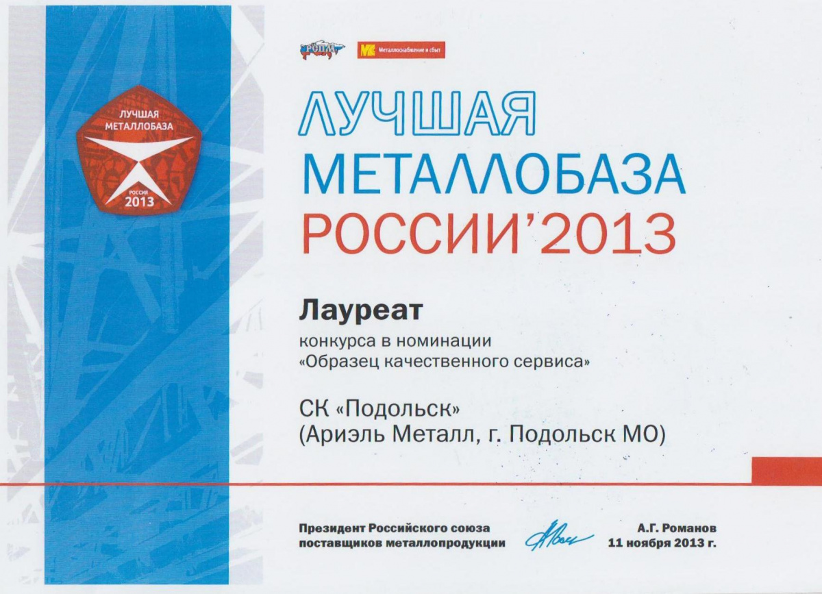 Лучшая металлобаза России 2013 СК «Подольск»