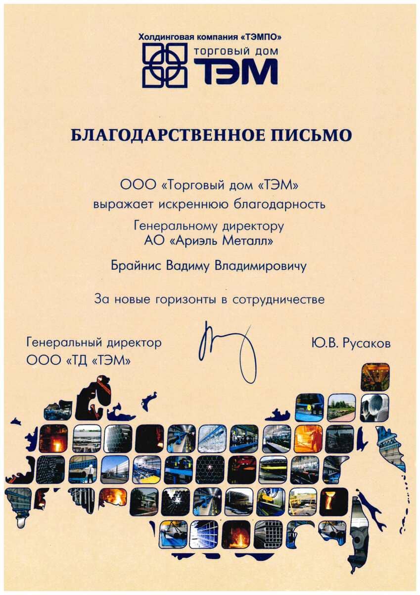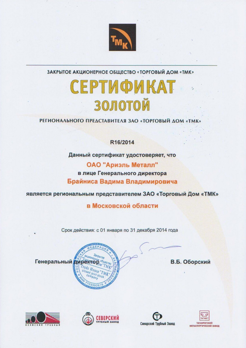 ОАО «Ариэль Металл» является региональным представителем ЗАО «ТОРГОВЫЙ ДОМ ТМК в Московской области