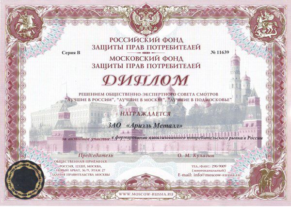 За участие в формировании цивилизованного потребительского рынка в России, Российский  и Московский фонды защиты прав потребителей